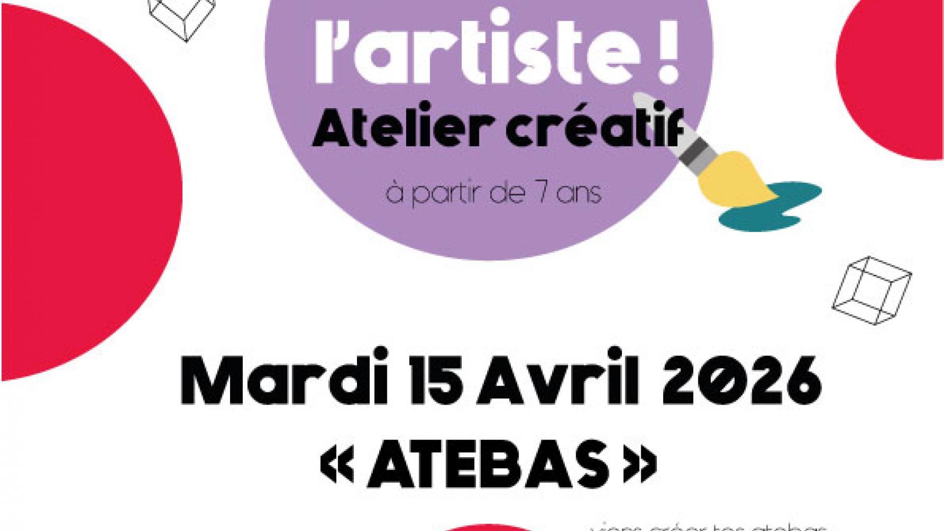 C'est toi l'artiste ! atelier créatif C'est toi l'artiste ! atelier créatif Publié le 30 mars 2026 / Dernière modification le 30 mars 2026 C'est toi l'artiste ! atelier créatif Publié le 30/03/2026 - Dernière modification le 30/03/2026 Le mercredi 15 avril 2026 de 12:00 à 12:00 Morcenx la Nouvelle