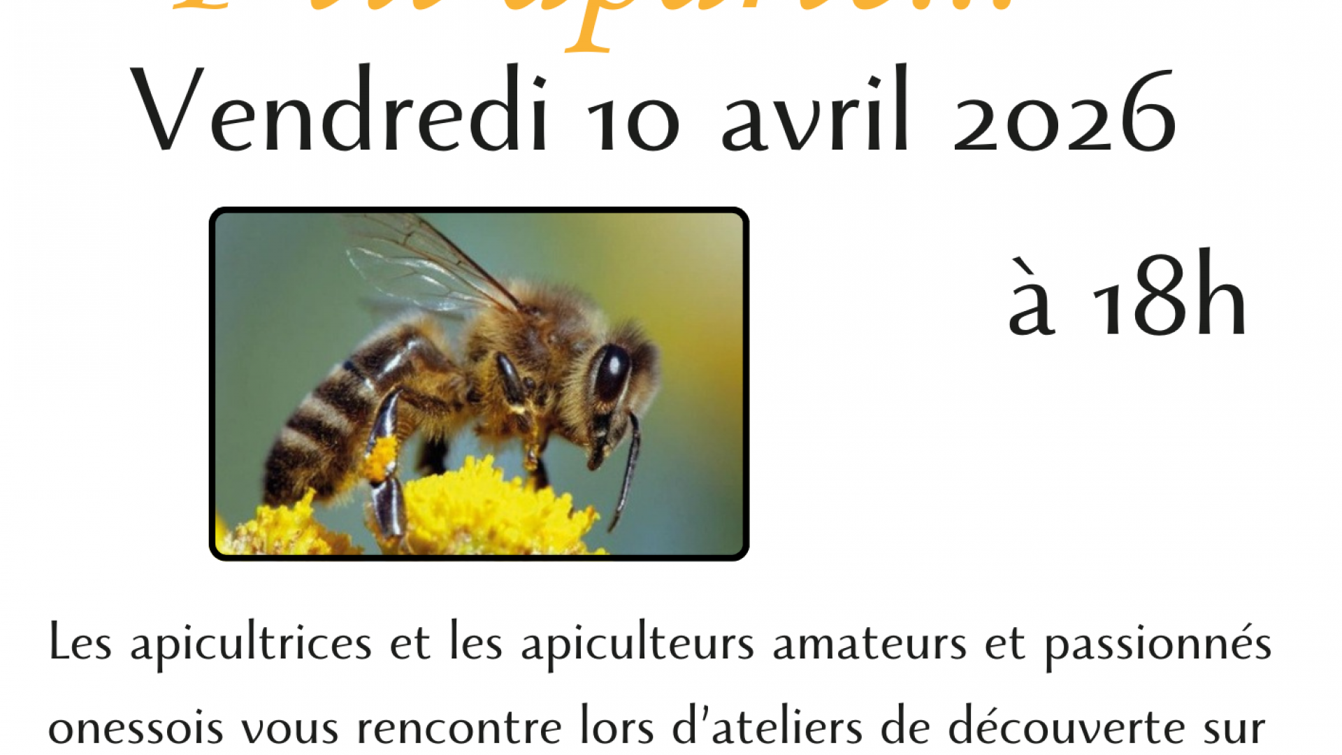 P'tit aparté... P'tit aparté... Publié le 30 mars 2026 / Dernière modification le 30 mars 2026 P'tit aparté... Publié le 30/03/2026 - Dernière modification le 30/03/2026 Le vendredi 10 avril 2026 de 12:00 à 12:00 Onesse-Laharie
